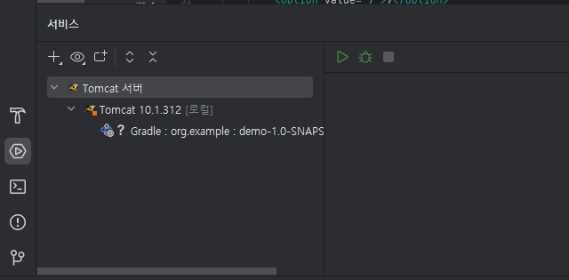 프로젝트가 무사히 생성되면 아래에 서비스를 눌러 Tomcat 서버를 실행할 수 있음을 확인할 수 있다