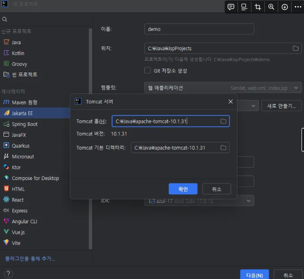 새 프로젝트 생성시, JakaraEE 클릭
