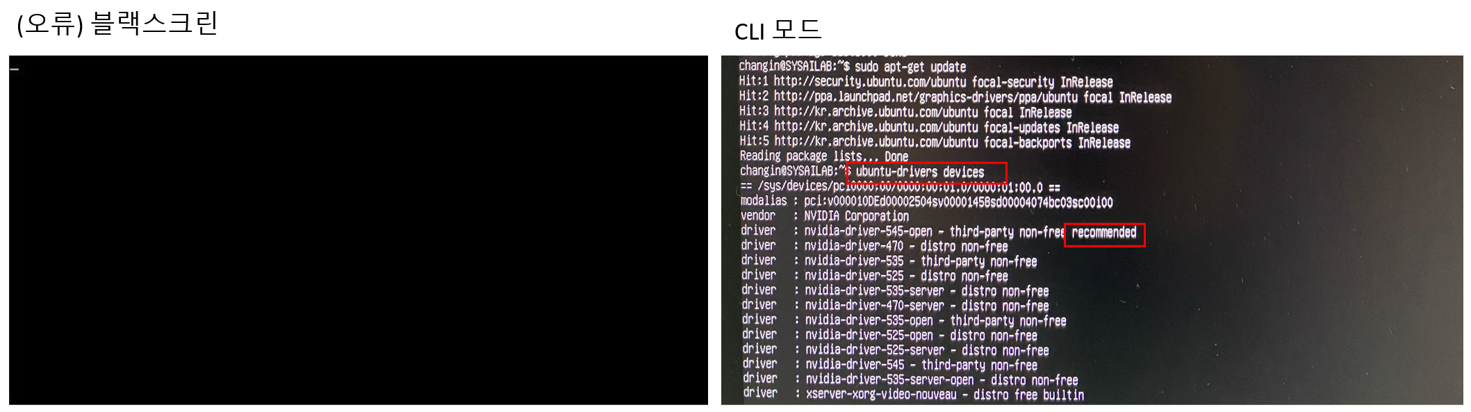 https://mlops-for-all.github.io/docs/setup-kubernetes/install-prerequisite/ 3. Install Prerequisite | MLOps for ALL Install docker mlops-for-all.github.io 이전글에서 위의 사이트와 여러 블로그를 통해 클러스트 구축을 진행하였다. 본 글에서는 클러스트 구축 과정에서 발생했던 문제 중 일부를 정리하고자 한다. ✏️ 우분투 환경 구축에서의 오류 ✓ 해결 과정 1. grub 모드 진입 2. 최초 1회 nodemodeset 추가 3. CLI 모드 진입 4. 그래픽 드라이버 목록 불러오고 업데이트 5. recommended 드라이버 확인 6. 추가 버전으로 설치 ✏️ Worker 노드와의 연결 ..